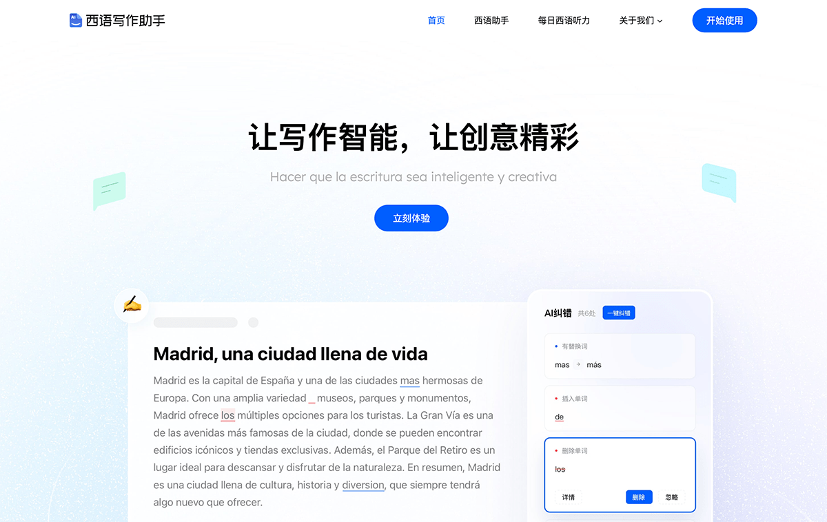 西语写作助手可以精准高效地检查拼写、语法、标点、缺漏错误。作文检查事半功倍,轻松生成优质文章。