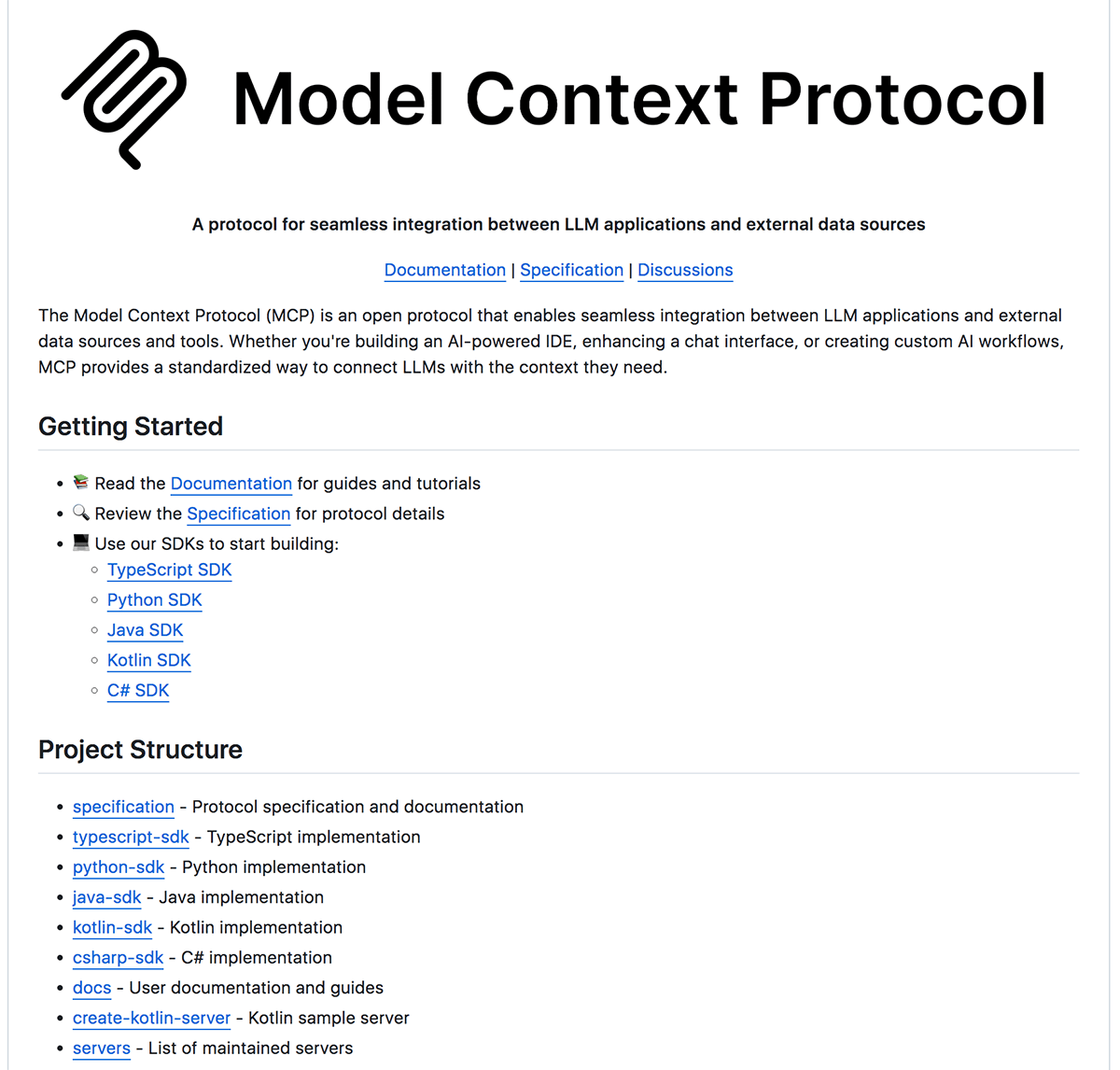 - MCP官方Github开源代码库:https://github.com/modelcontextprotocol