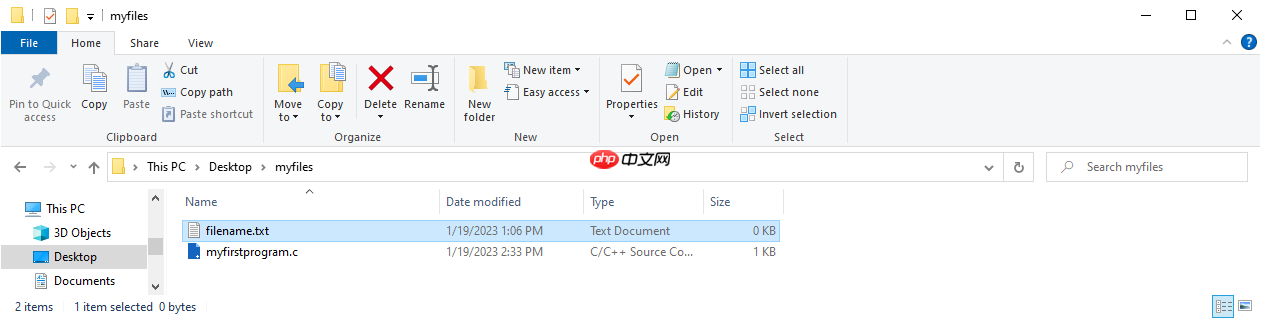 注意:如果未指定任何其他内容,该文件将在与其他 C 文件相同的目录中创建。