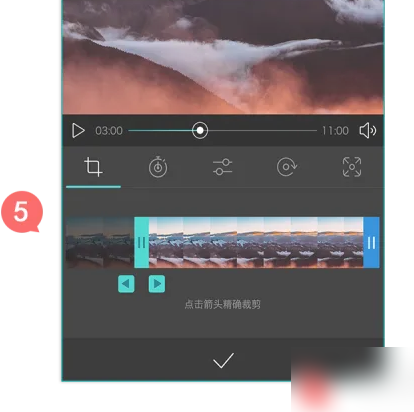 5.按视频上的播放按钮可以预览裁剪的效果,满意后,点击*下方的右【对勾】按钮,完成对该视频的裁剪