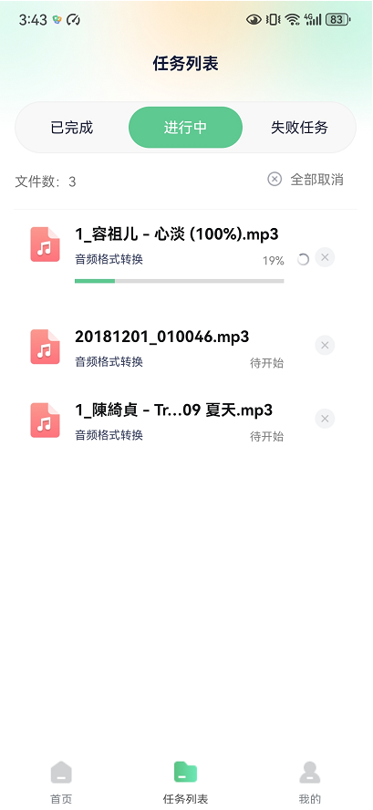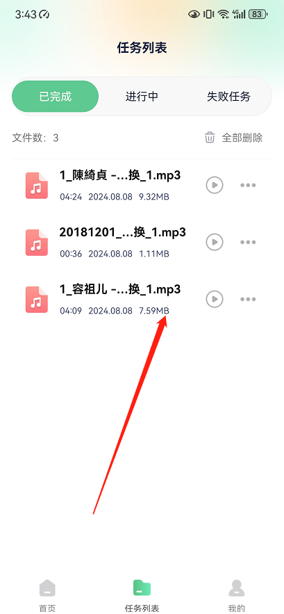 步骤5、m4a转换成mp3格式后,在「已完成」中可以查找并使用文件。