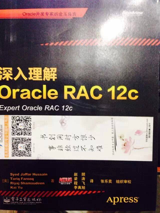 本站文章除注明转载外,均为本站原创: 转载自love wife & love life —Roger 的Oracle技术博客 本文链接地址: 《Expert Oracle RAC 12c》中文版上市 跟几位朋友一起翻译的一本书已经出版了,自己也买了一本,如果遇到问题,欢迎留言或拍砖!水平所限,还请海涵啊! [...]