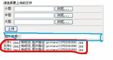 红色部分为三张图片上传成功后显示的图片路径
