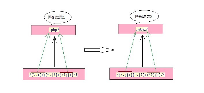 黑色箭头是$pattern正则匹配,绿箭头是子正则匹配。