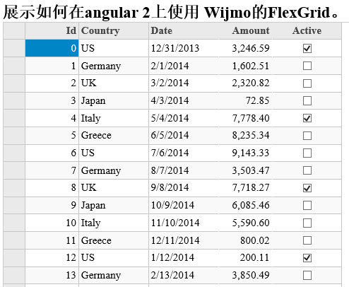 展示如何在angular 2上使用 Wijmo的FlexGrid。