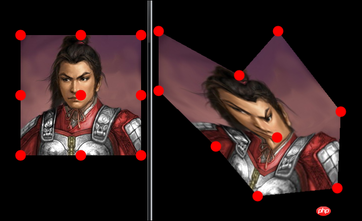 这面是测试连接,你可以拖动图中的红点,来让图片发生任意的扭曲变形