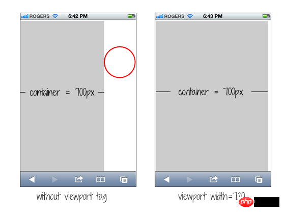 我们可以通过简单的添加一个720px宽度的viewport,来修复这个问题。我们没有对你的设计进行改变,但是iphone会做出调整,来适应你的720px宽度。