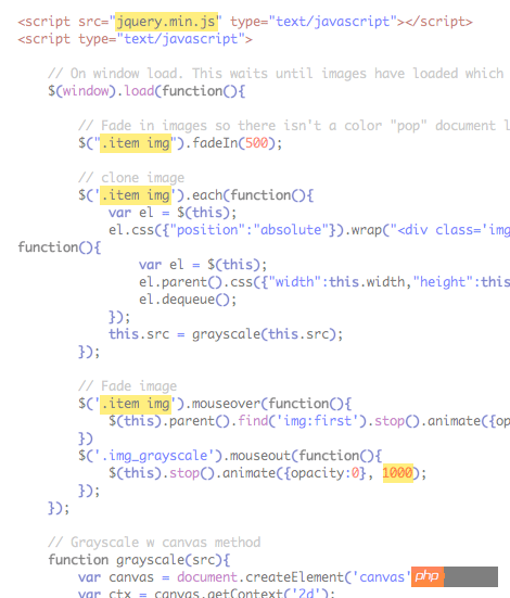 下面的jquery代码将会寻找目标图片,并生成一个灰度的版本。当你鼠标移动到图片上时,灰度图片会变成原色。