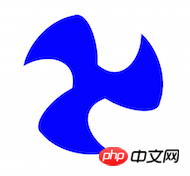 在代码中,我们定义了三个叶片,并且对第二个和第三个叶片做了旋转和定位的处理,让这三个叶片排布组合成一个叶轮来,但是怎么能让叶轮中间空出一个三角形呢,这个问题解决起来不难,我们只需要在叶片的points属性上再多加一个顶点,就可以填充这个三角形了,代码如下: