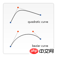 3: quadraticCurveTo,占用2个点信息,第一个点作为曲线控制点,第二个点作为曲线结束点
