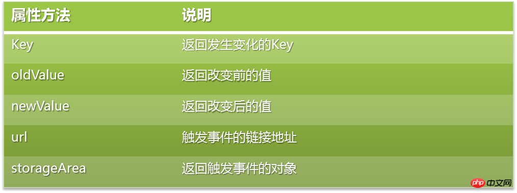 Web Storage支持的属性与方法: