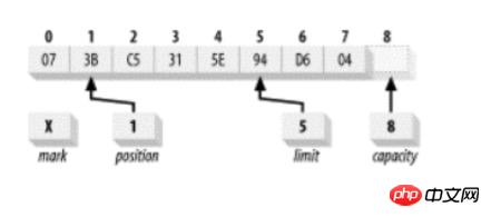位置被设为 0,而且容量和上界被设为 10, 好经过缓冲区能够容纳的最后一个字节。 标记最初未定义。容量是固定的,但另外的三个属性可以在使用缓冲区时改变。