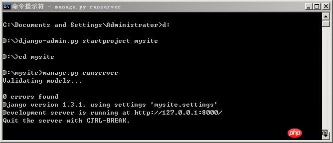打开CMD窗口,在D:\mysite目录下输入指令:如图12