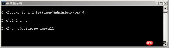 下载Django目前最新版本 Django-1.3.1.tar.gz。我们下载的这个Django-1.3.1.tar.gz文件是一个标准的Unix压缩格式的文件,我们在Windows下也可以使用WinRAR之类的软件进行解压,解压之后我们得到一个Django-1.3.1的目录,假设我们解压到D:\Django目录。我们打开DOS命令提示窗口,进入这个目录,然后执行python setup.py install 这个命令来开始Django的安装。如图5。
