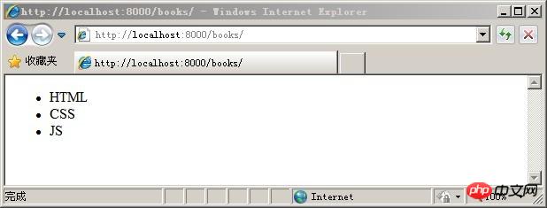 return render_to_response('booklist.html',{'books':list})8、修改d:\mysite\url.py的内容,结果为: