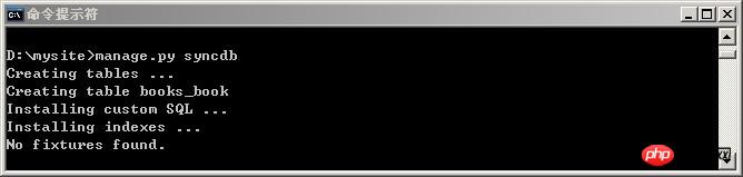 打开CMD窗口,在d:\mysite目录下输入下面命令,同步你的模型到数据库。如图13
