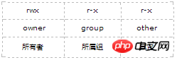所以abc文件夹中表示owner拥有rwx(7),group拥有rx(5),other拥有rx(5)。