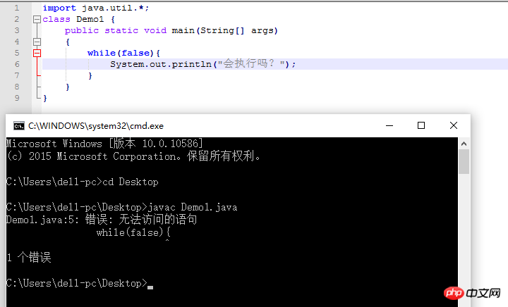 1)分析原因:在java中,java编译器是不允许写废话。因为false为常量,jvm会识别常量值,while(false)是句废话,所以报错。