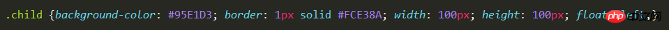 1 <!DOCTYPE html> 2 <html lang="en"> 3 <head> 4 <meta charset="UTF-8"> 5 <title>BFC清除内部浮动</title> 6 <style type="text/css"> 7 .child {background-color: #95E1D3; border: 1px solid #FCE38A; width: 100px; height: 100px;} 8 .parent {width: 300px; border: 1px solid #95E1D3;} 9 </style>10 </head>11 <body>12 <div class="parent">13 <div class="child"></div>14 <div class="child"></div>15 </div>16 </body>17 </html>