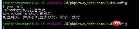 所以,我们做项目肯定是可以用php做的,于是我新建了个文件夹,名为autoConfig,里面创建了个init,里面写了如下代码: