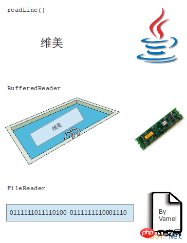 BufferedReader br = new BufferedReader(new FileReader("file.txt"));在创建的过程中,我们先建立了一个FileReader对象,这个对象的功能是从文件"file.txt"中读取字节(byte)流,并转换为文本流。在Java中,标准的文本编码方式为unicode。BufferedReader()接收该FileReader对象,并拓展FileReader的功能,新建出一个BufferedReader对象。该对象除了有上述的文件读取和转换的功能外,还提供了缓存读取(buffered)的功能。最后,我们通过对br对象调用readLine()方法,可以逐行的读取文件。