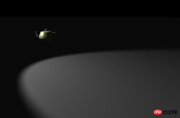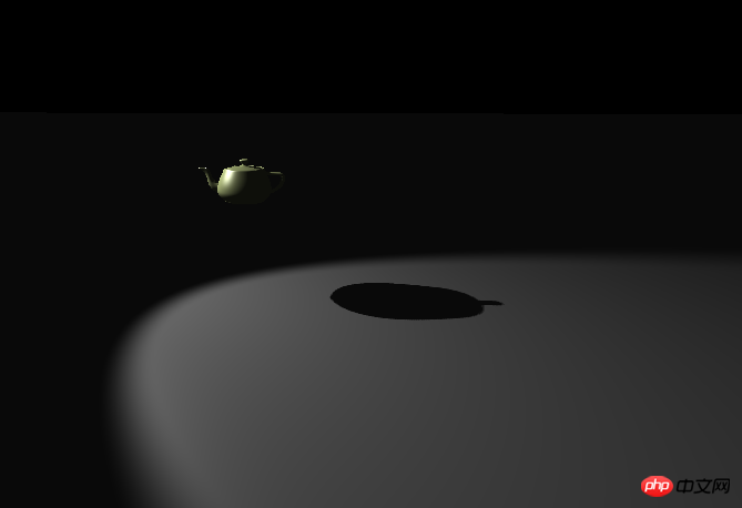 以下是添加聚光灯光源的代码,因为聚光灯光源可以聚焦,我们演示会方便一些。小伙伴们也可以自己动手尝试其他光源。记住,我们需要的是点光源或者平行光等光源。环境光是无法生成阴影的。但如果希望周围显示的更加清楚,我们也可以同时添加点光源和环境光,只是环境光的光强需要弱一些,避免环境光过强影响阴影的正常显示。