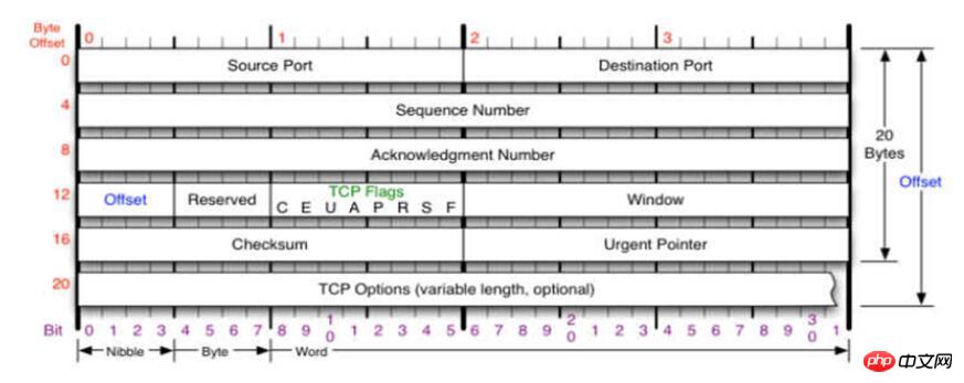 先来分析一下TCP头的格式以及每一个字段的含义: