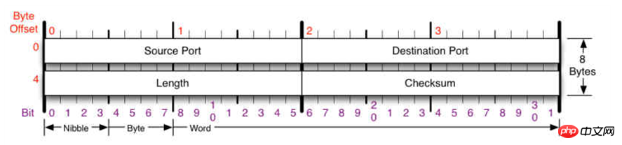 Length占用2个字节,标识UDP头的长度。Checksum : 校验和,包含UDP头和数据部分。