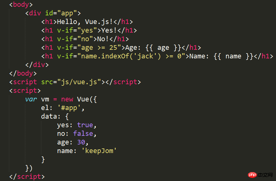 v-if是条件渲染指令,它根据表达式的真假来添加或删除元素,它的基本语法:v-if = "expression",expression是一个bool值的表达式,该表达式既可以是bool属性,也可以是一个返回bool的运算符,如以下代码: