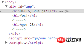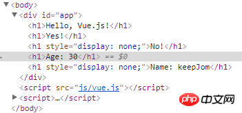 通过控制台可以看到渲染的HTML代码中只包含这三个<h1>元素,如下图: