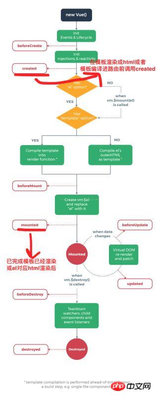 created:在模板渲染成html前调用,即通常初始化某些属性值,然后再渲染成视图。