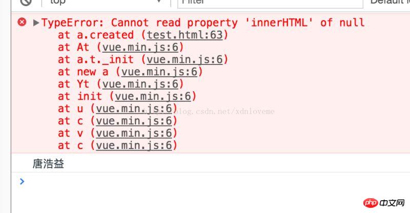 而在mounted中,由于此时html已经渲染出来了,所以可以直接操作dom节点,故输出了结果“唐浩益”。