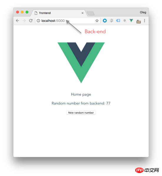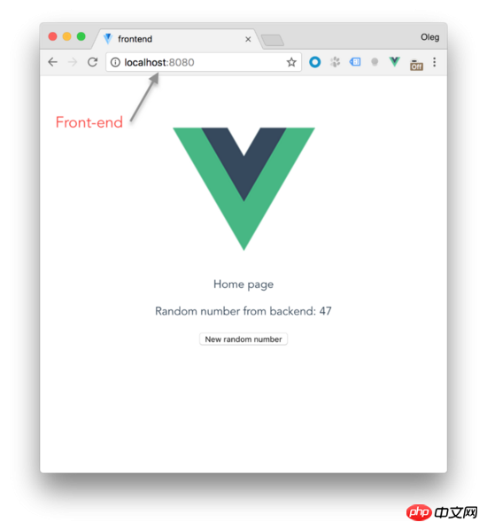 现在在主页上,你应该看到前端显示我们产生的随机数。让我们把它连接到后端。