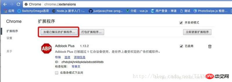 *如果看不见“加载已解压的扩展程序…”按钮,则需要勾选“开发者模式”。