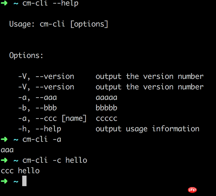 }在配置文件中增加了此项后,只需要在配置文件根目录下执行npm link命令,即可使用cm-cli --help命令来查看加载的cm-cli脚手架。