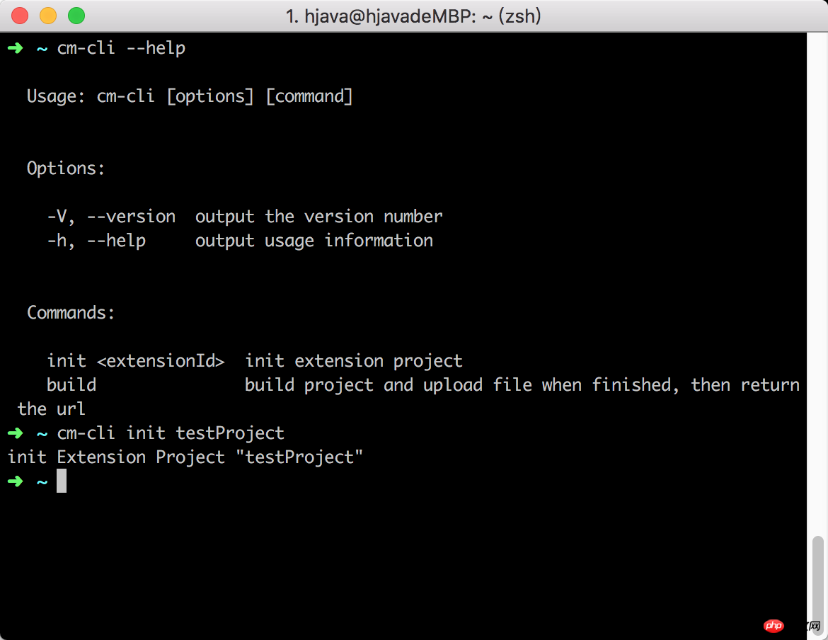 如果你发布了你的脚手架,那么在其他用户使用命令npm install -g cm-cli之后,便可以在全局下使用你的脚手架了。