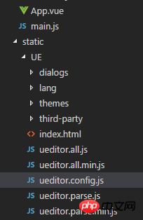 vue的前台配置需要下载ueditor的文件放在目录中,我将其放在了static文件夹中,在vue入口文件中引入ueditor的文件: