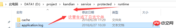 CFileLogRoute表示生成文件日志,当程序运行时出现error,warning两种类型的错误时会输出日志,默认是在protected/runtime/application.log,如下图: