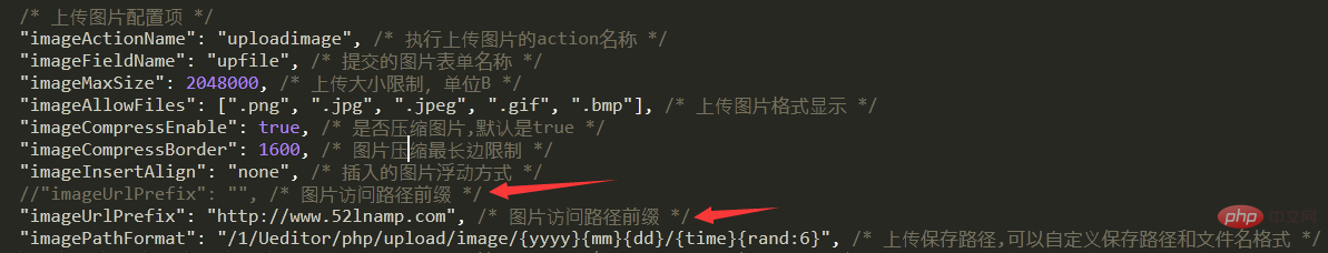 其中imageUrlPrefix这个属性加上域名即可:"imageUrlPrefix": "http://www.xxx.com", /* 图片访问路径前缀 */