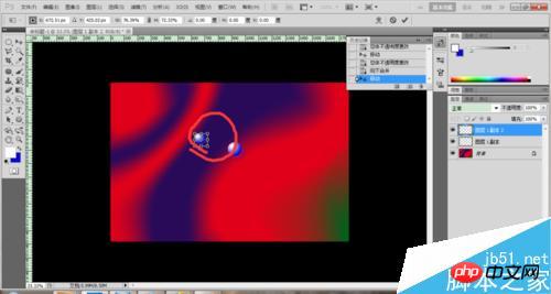再次选择工具箱上的渐变工具,选择圆形渐变工具,设置前景色和背景色分别为白色和蓝色,然后在小球内拖拽,实现渐变,做出球状效果,按“Ctrl+D”取消选区,示意图如下。