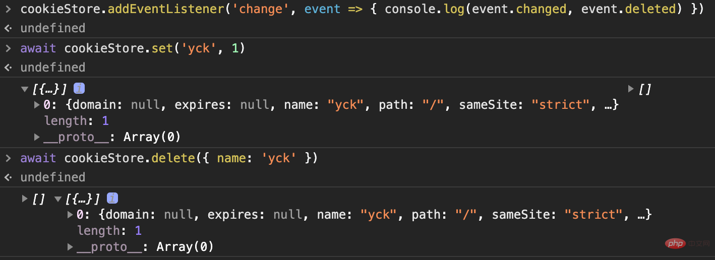 当我们设置或者删除 Cookie 时对应的事件就会抛出我们所改变的内容。