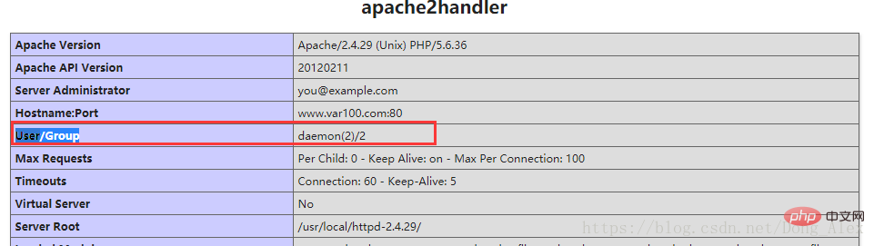 将其对应修改即可, 例, 我当前启动的是apache, 我将项目改为daemon用户跟daemon组