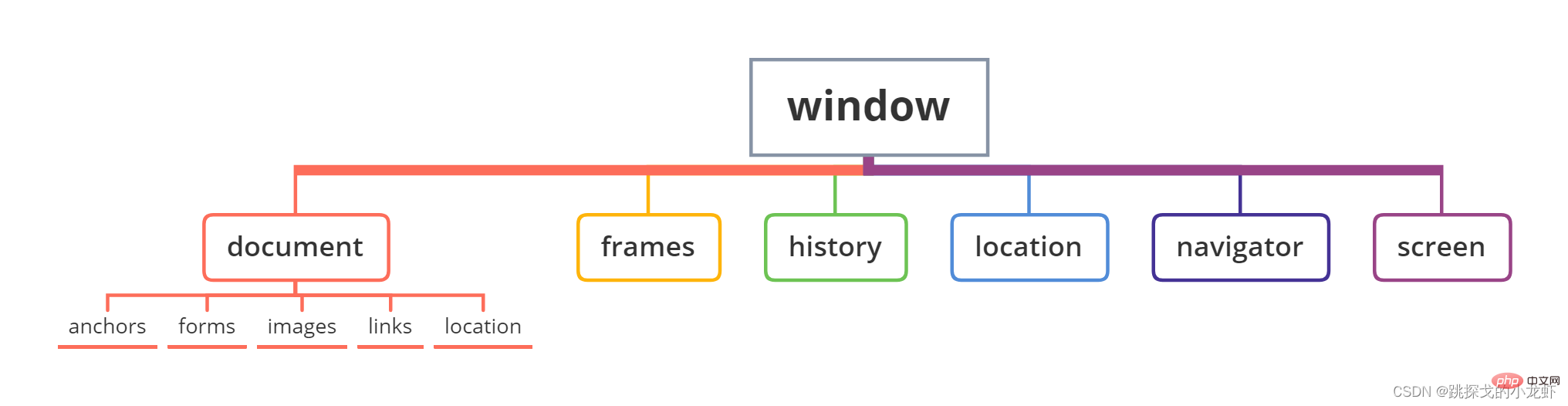 那么首先我们用一张图把整个BOM的结构给大家梳理一下,与DOM类似,BOM也有一个树状结构:
