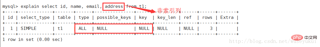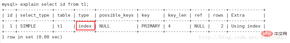 查询中如果使用了覆盖索引,则该索引仅出现在key列表中