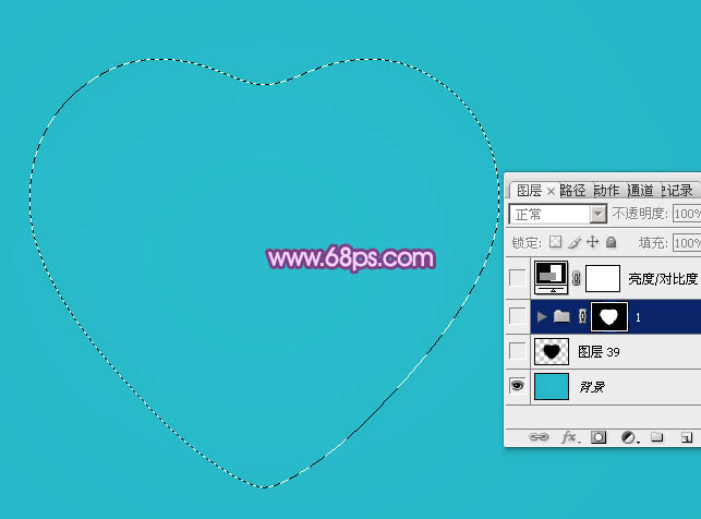 2、新建一个组,打开图2所示的心形素材,解锁后拖到组里面,放到画布的中间位置,再载入心形选区,给组添加图层蒙版,如图3。