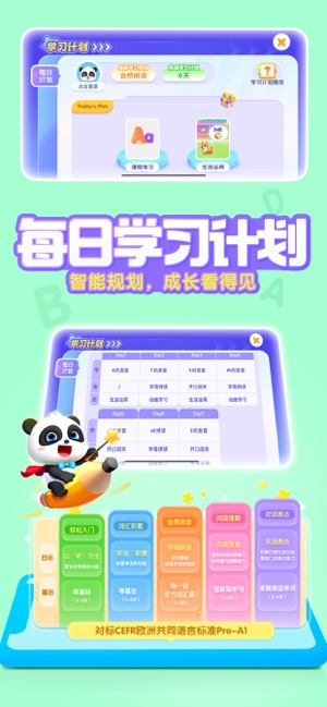 • 每日学习计划:根据儿童英语水平及学习阶段,智能规划每日学习课程,助力儿童高效学习,每日成长可见。
