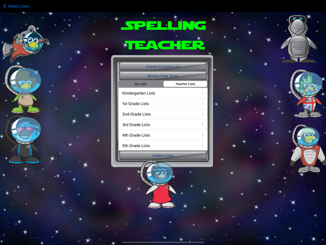 Including lists for grades K-6 in one app allows students to advance based upon their ability no matter what grade they are in. This allows teachers to create individualized spelling programs based upon each student’s skills. The app also provides a simple process for creating custom weekly lists so that students can practice words and take practice tests on words assigned by their primary school teachers. Schools that use this product can eliminate the purchase of paper spelling workbooks saving thousands of dollars over the years.